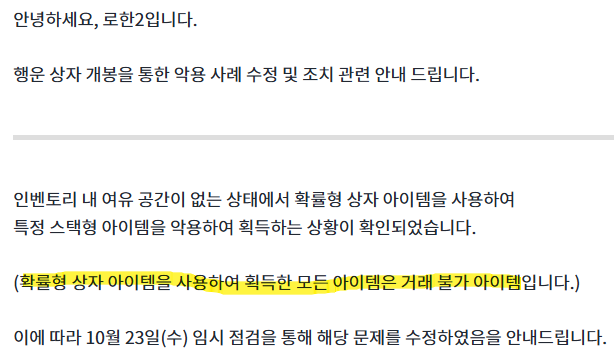 게임사 생각 : 상자에서 얻은건 모두 거래 불가야. 너희가 말하는 아이템 시세나 가격에는 문제없어~