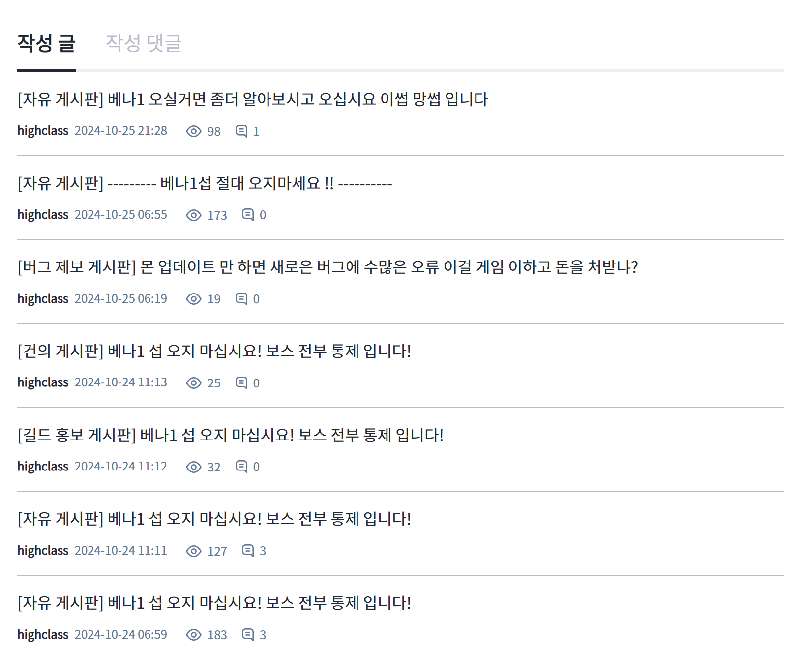 전 이 서버에서 길드원님들하고 열심히 하시는 다른 분들과 보스 레이드가 아닌 다른 재미 찾아서 소소하게 즐길테니 관심 꺼주시고...