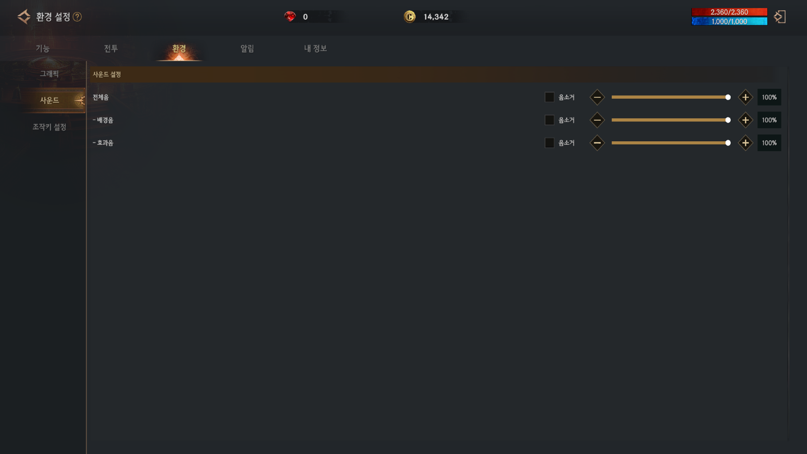 게임 내 사운드 관련 항목을 설정할 수 있습니다.