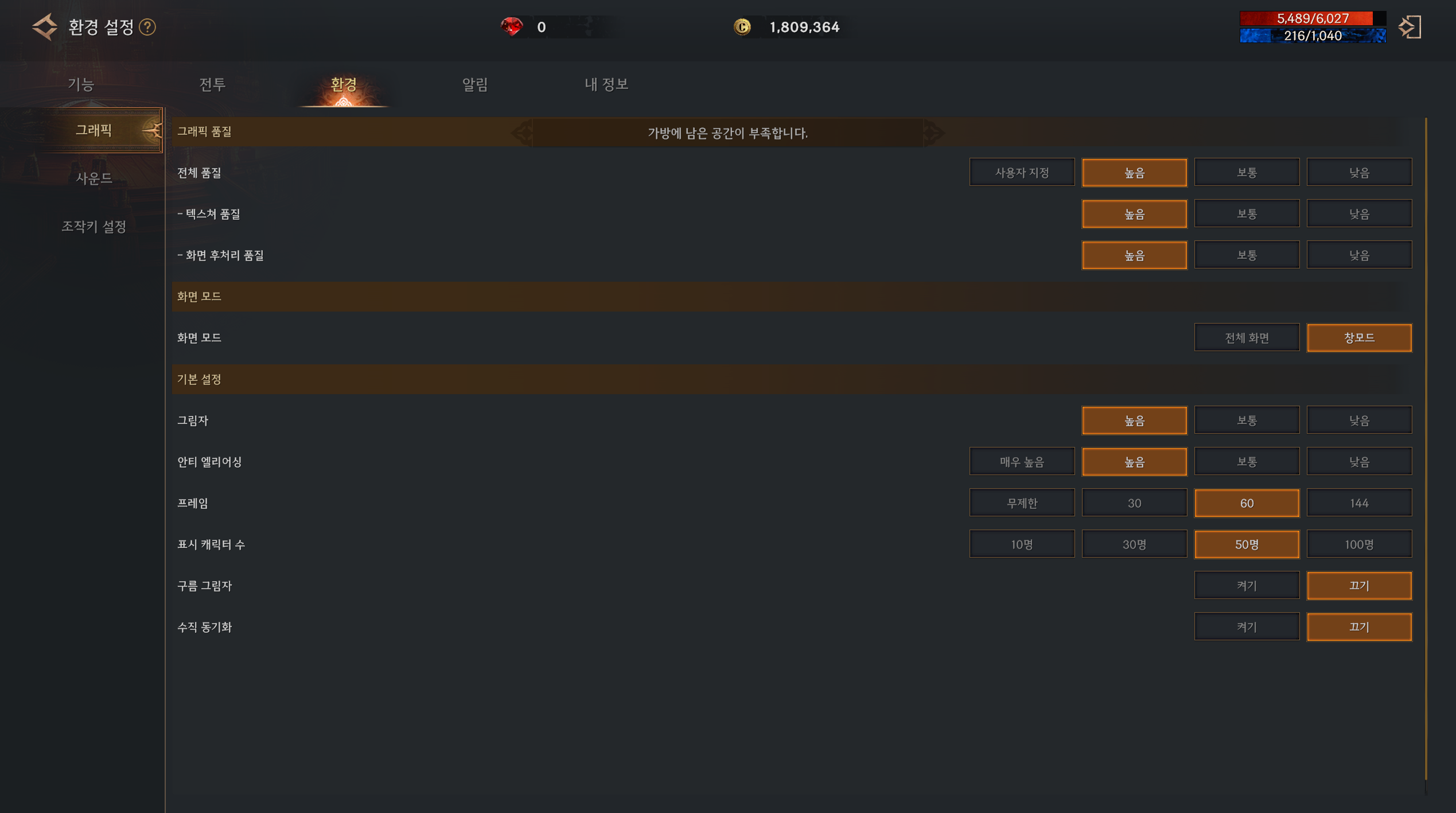 * 10/4 15:15 그래픽 설정 기능 추가로 인한 스크린샷 수정