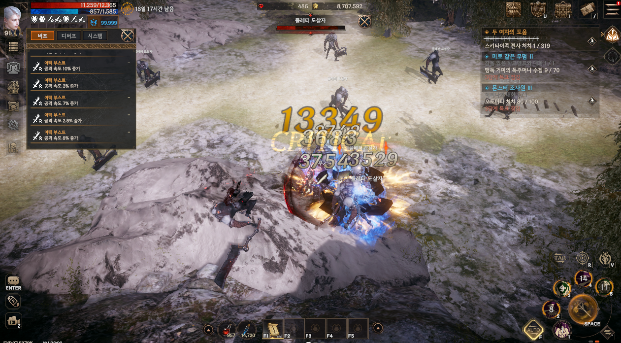 방송 도중 길드HP효과 13레벨 찍는 순간 버그 걸려서 HP1 되더니 공속이 비약적으로 상승됐습니다.