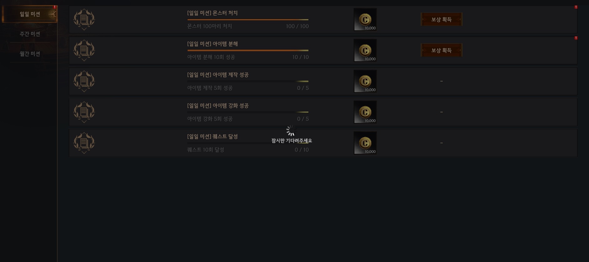 매일 한번씩 미션누르고 게임종료 했다가 켜야합니다.
