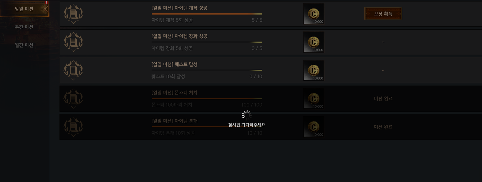 해당 미션 클릭해서 받기가 아닌
