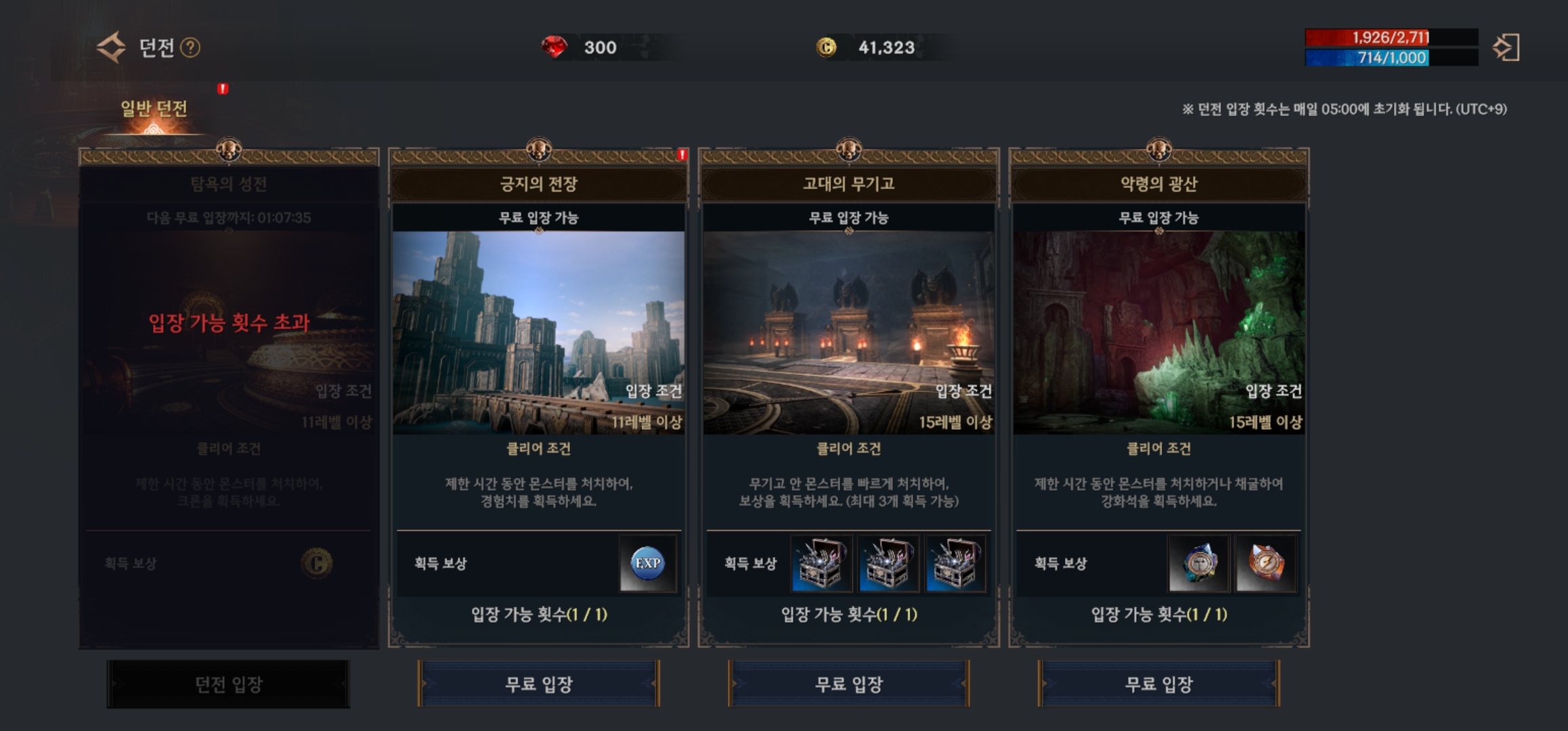 던전입장하자마자 팅기더니 횟수제한뜨던데요??