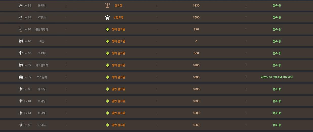 몇몇 중요한 캐릭은 빠져나가고 안맞을때쯔음 본길드로 간겁니다.