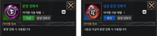 > 문양 강화석은 ‘문양 강화석’과 ‘상급 문양 강화석’ 2종류가 존재합니다.