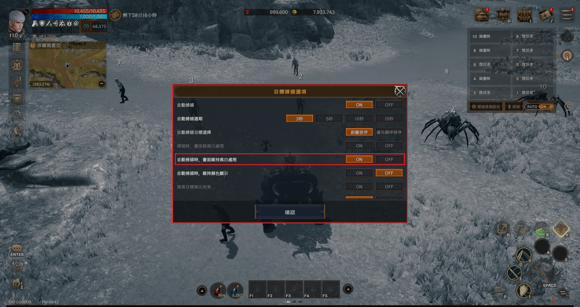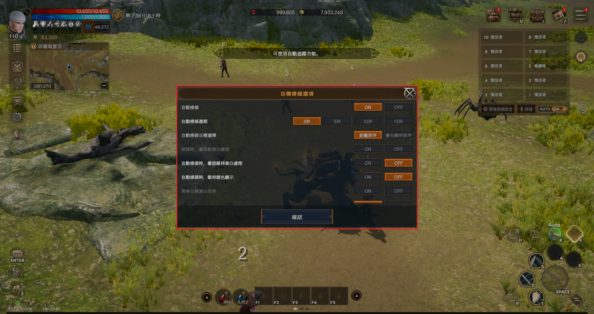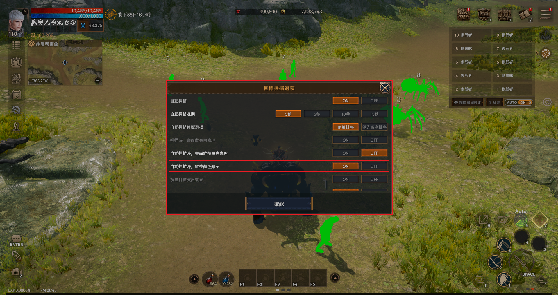 選擇右方的靶子圖示,設定為ON時會開始掃描周圍。