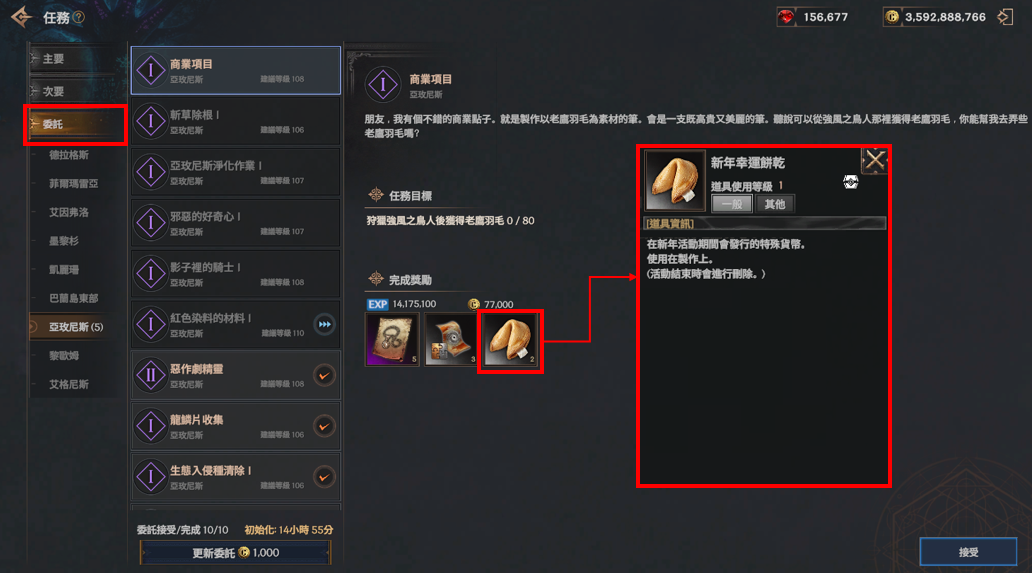 ❈ 新年幸運餅乾將於完成委託時獲取。若在活動更新前(12 月 31 日 04:00 起至維護開始前)完成委託,