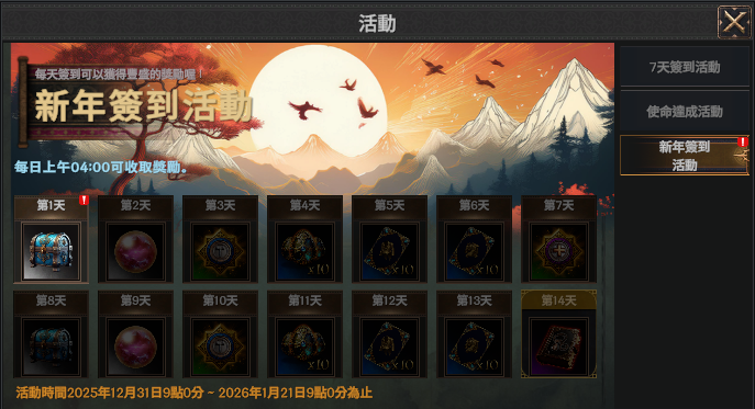 ✧ 活動期間: 2025 年 12 月 31 日(三)維護後 ~ 2026 年 1 月 21 日(三)維護前