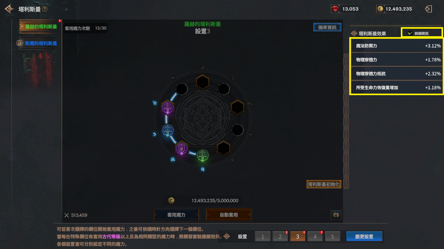 ✧ 勾選塔利斯曼效果右側的 【詳細資訊】 ,即可確認所有套用魔力屬性的合計數值。