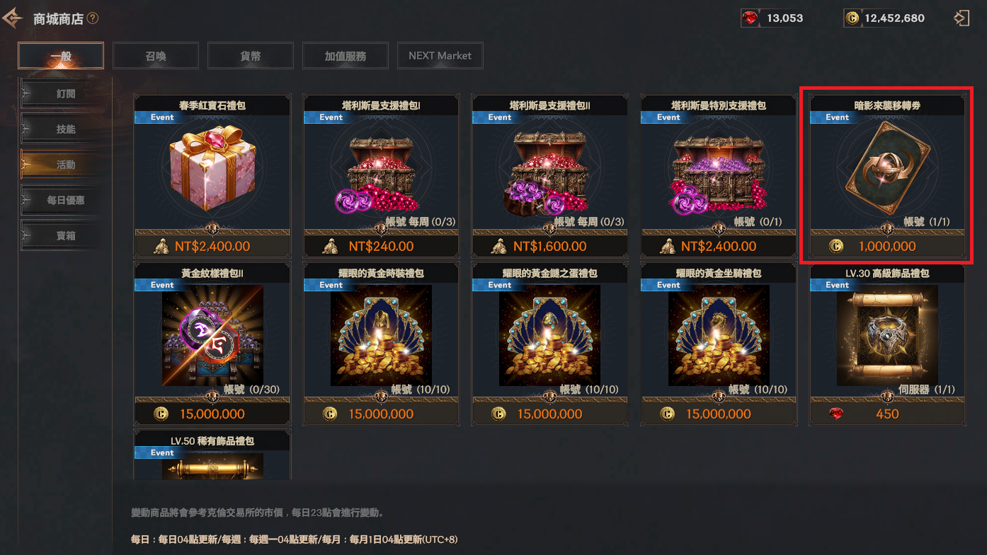 ▹ 伺服器移轉期間,可用克倫購買伺服器移轉商品「暗影來襲移轉券」,每個帳號限購 1 次。