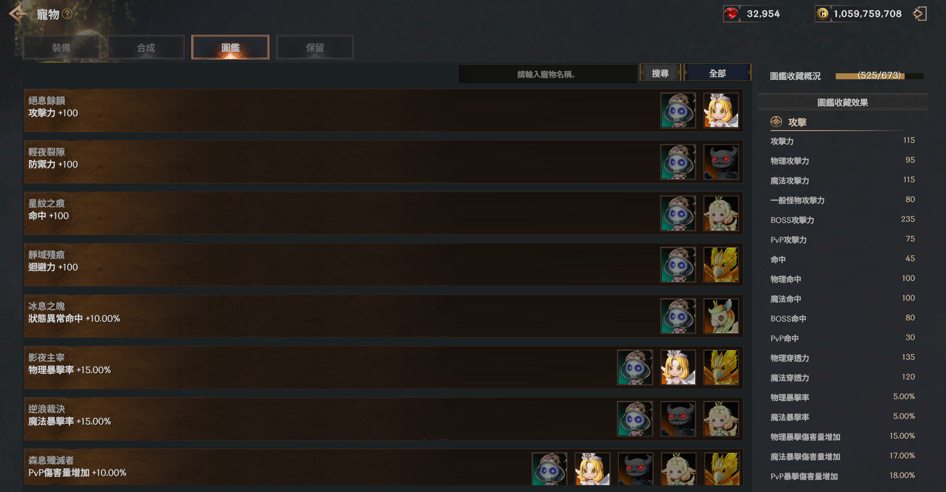 ![]() | 唯一 | 經驗值獲得量增加 +60% 狀態異常命中 +30% 物理暴擊率 +30% 魔法暴擊率 +30% BOSS傷害量增加 +25% |