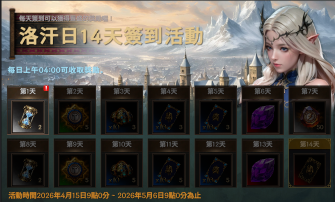 ✦ 洛汗日14天簽到活動開始