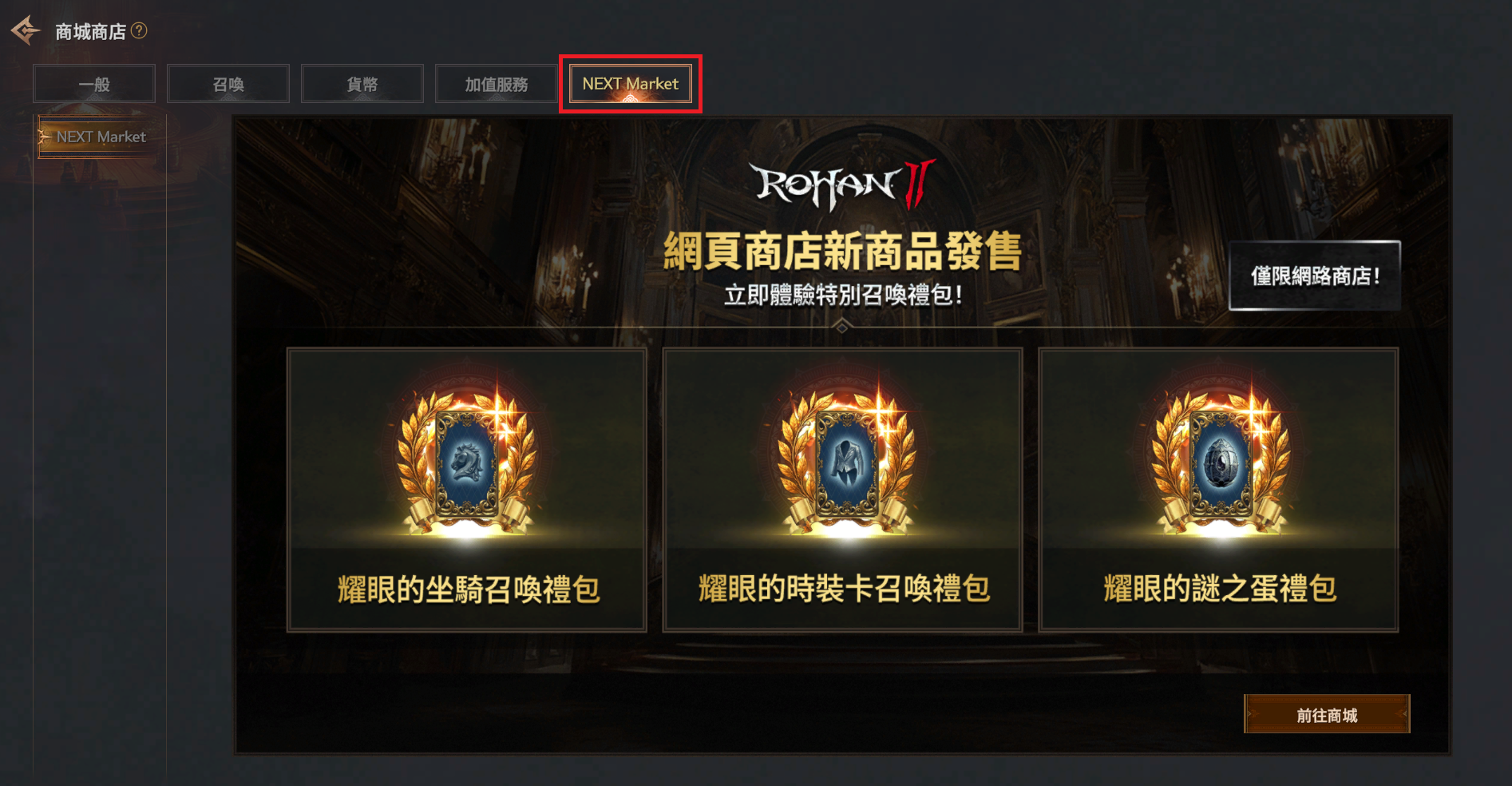 | 耀眼的坐騎 召喚禮包 | 耀眼的坐騎 召喚劵(10次) | 2 | NT$450 | 無限制 |