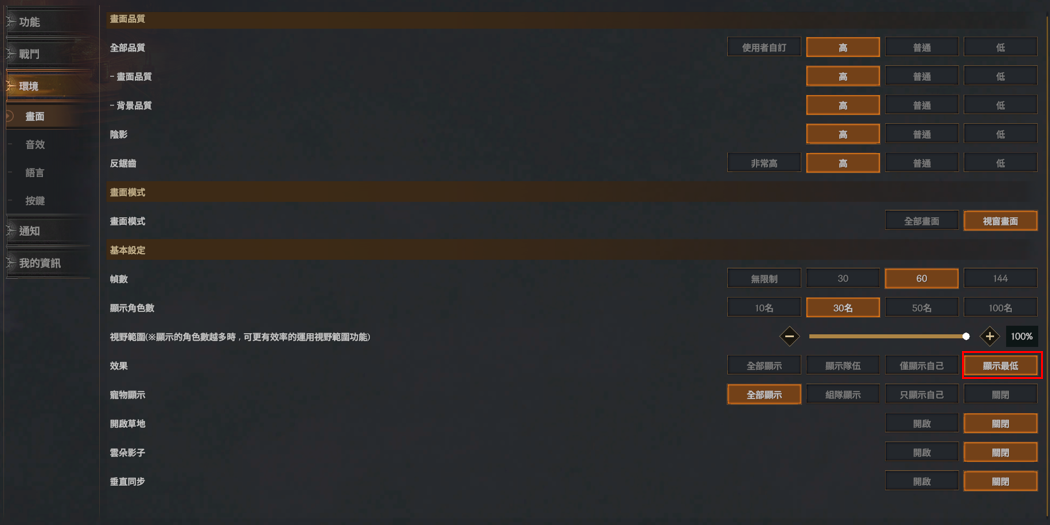 ✦ 將調整「特效顯示最低設定」的選項名稱。