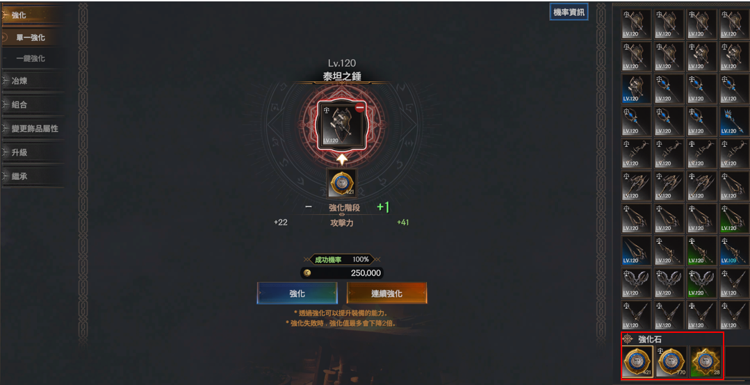 | 閃亮的強化石 | 閃亮的上級強化石 | 閃亮的上級強化石 | 閃亮的上級強化石 | 特級強化石 |