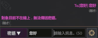 ✦ 密語給未登入帳號、自身角色、或不存在的角色時,將顯示「無法傳送」的系統訊息。