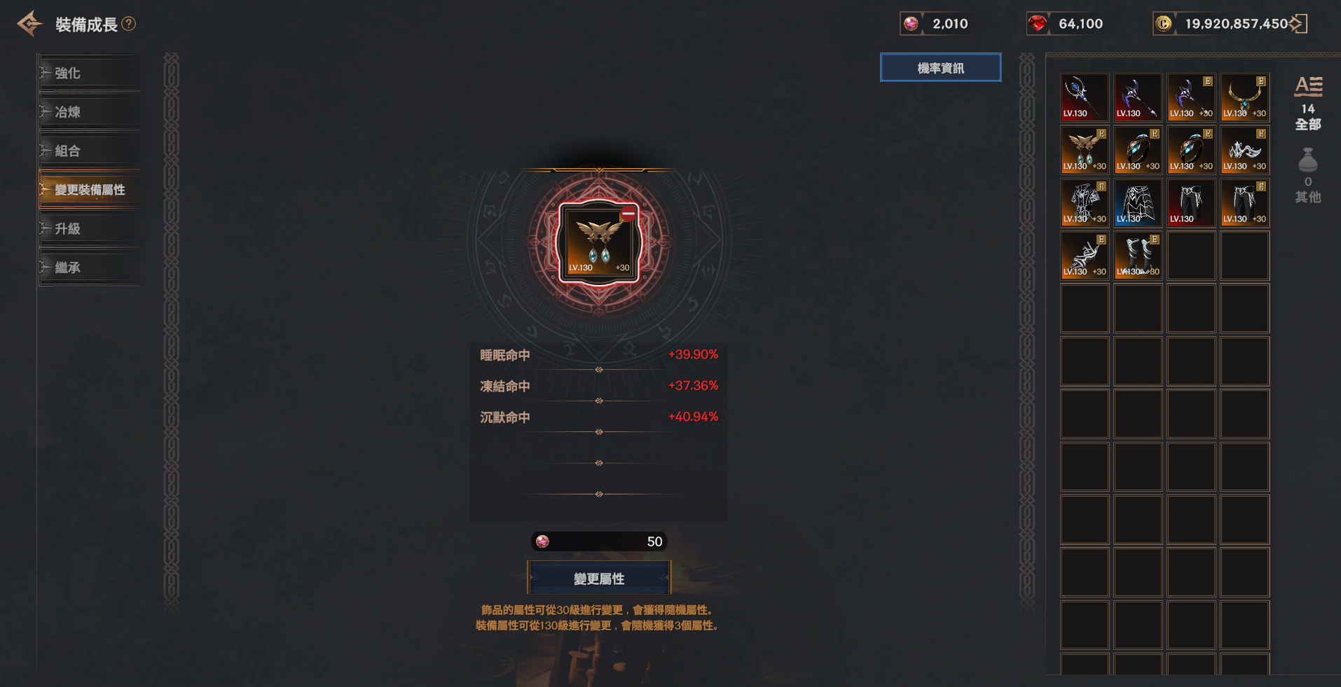 | 稀有 130 等級項鍊 | 1 |