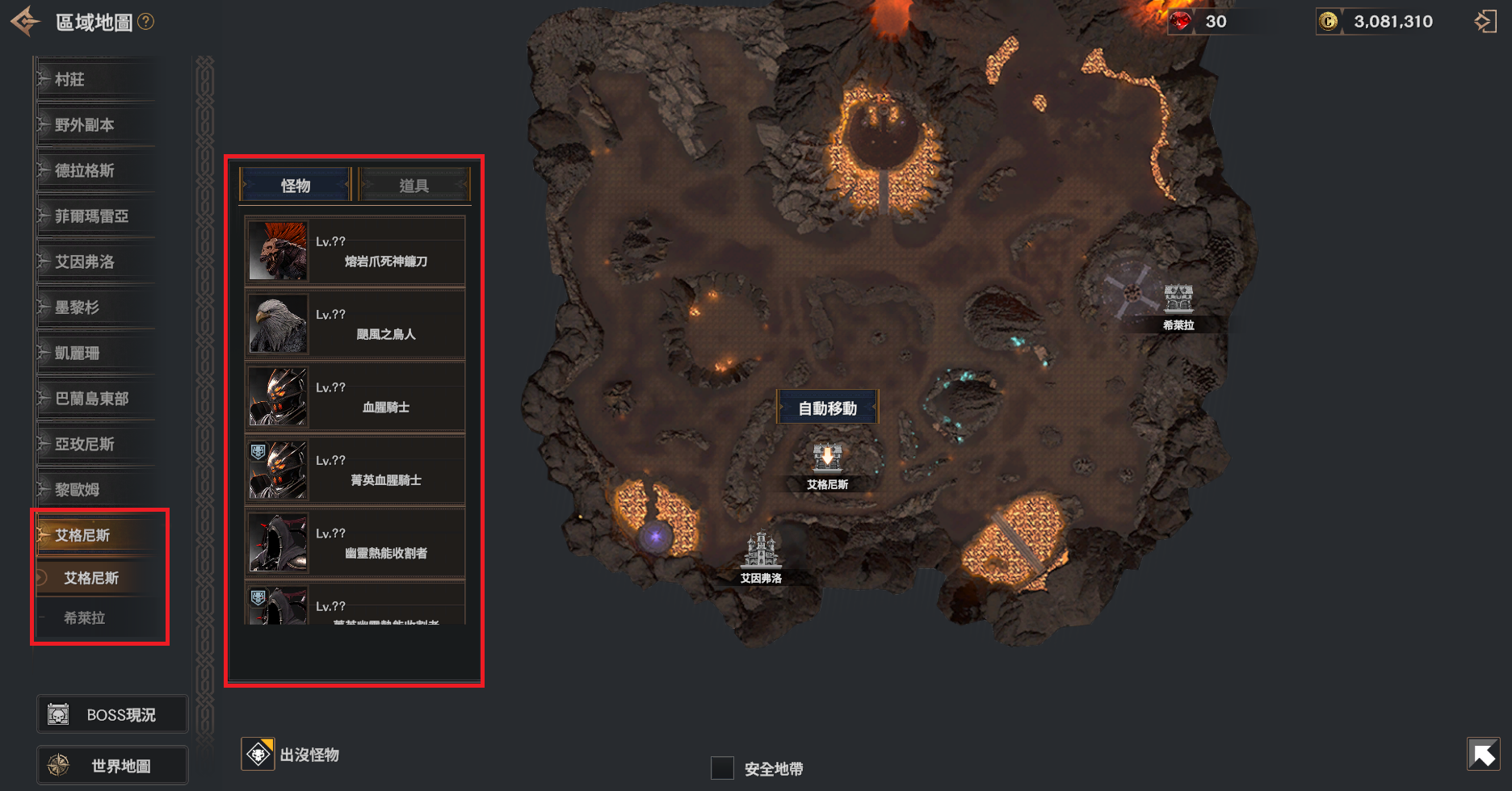 - 艾格尼斯地區的菁英怪物將有較高的機率掉落特級幸運箱