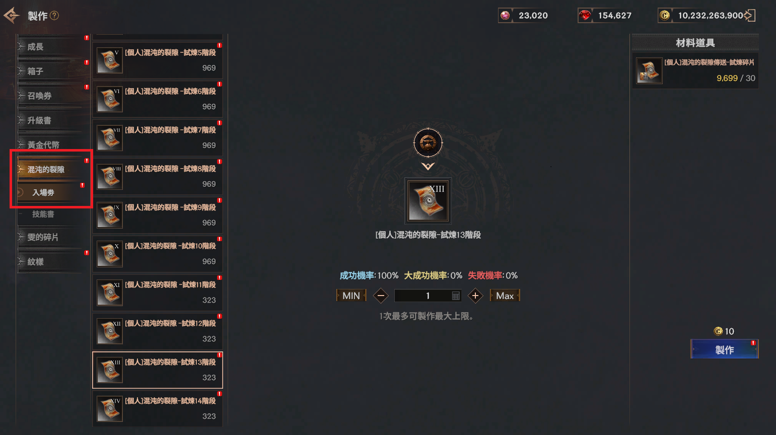 ▹ 可使用 「試煉碎片」 作為材料,製作進入 「混沌的裂隙 - 試煉」 新階段所需的卷軸。