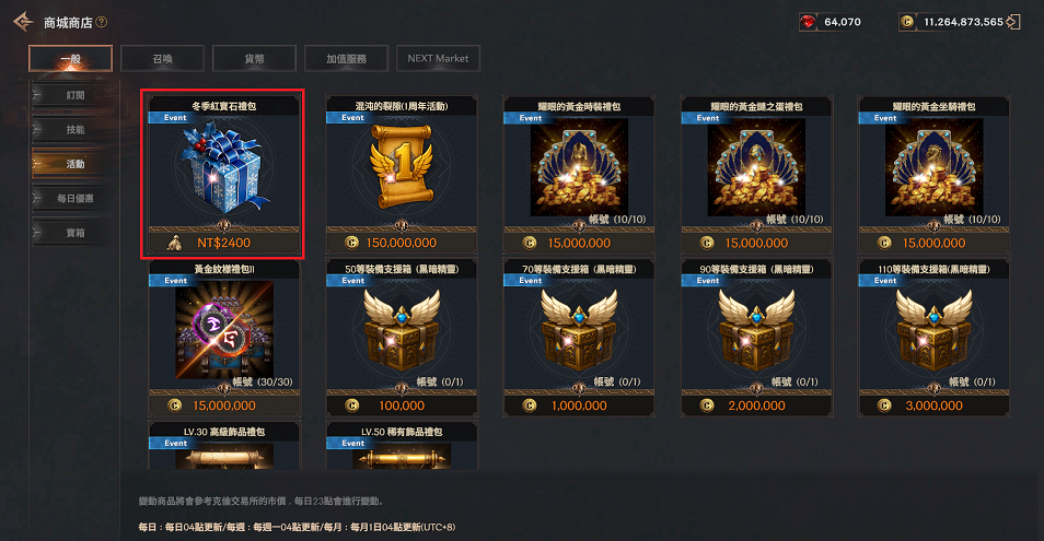 | 冬季紅寶石禮包 | 4500 紅寶石箱 | 1 | 2400 NTD | 無 |
