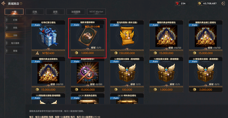 - 伺服器轉移券僅能在伺服器轉移期間購買,其他時間將停用購買功能。