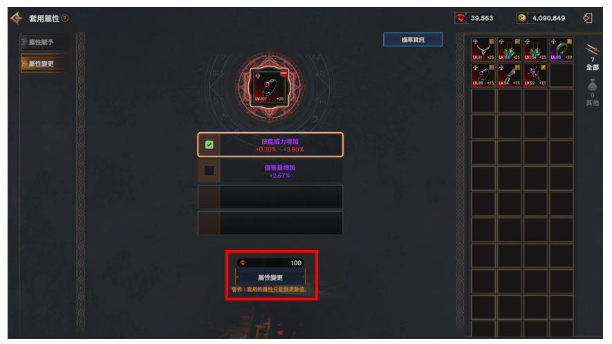 ▹ 活動期間內,使用套用屬性的屬性變更時,所需的紅寶石費用將以原本的 20% 費用進行折扣。