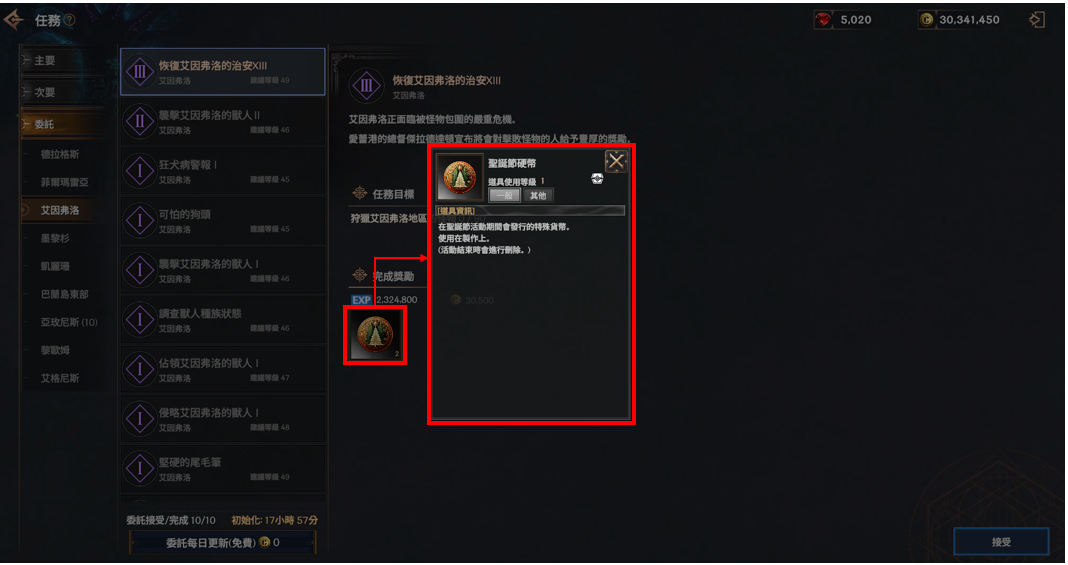 ❈ 硬幣於完成委託時發送,且若於活動更新前的 12 月 10 日 04:00 起至維護開始前完成的委託,