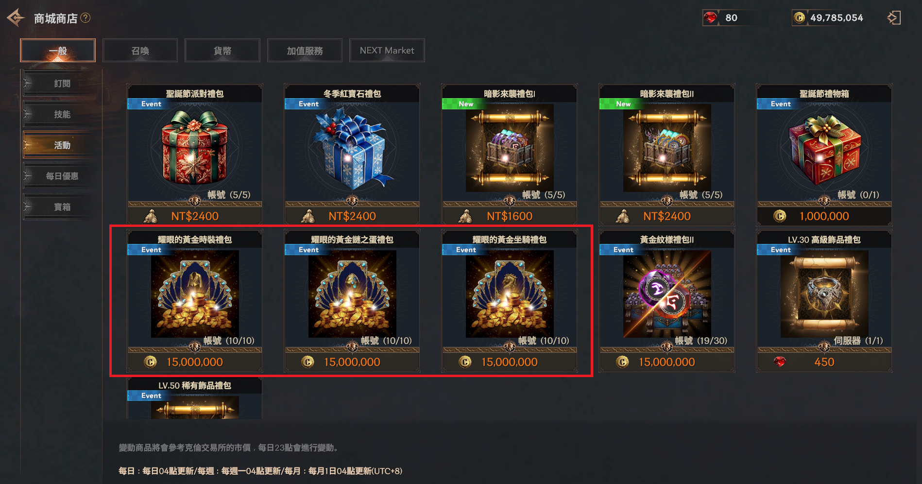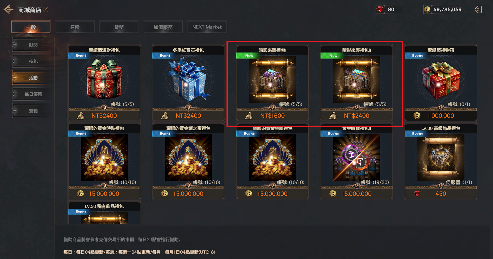 | 暗影來襲禮包Ⅰ | 遠古技能強化石 | 50 | NT$1600 | 帳號限購5次 |