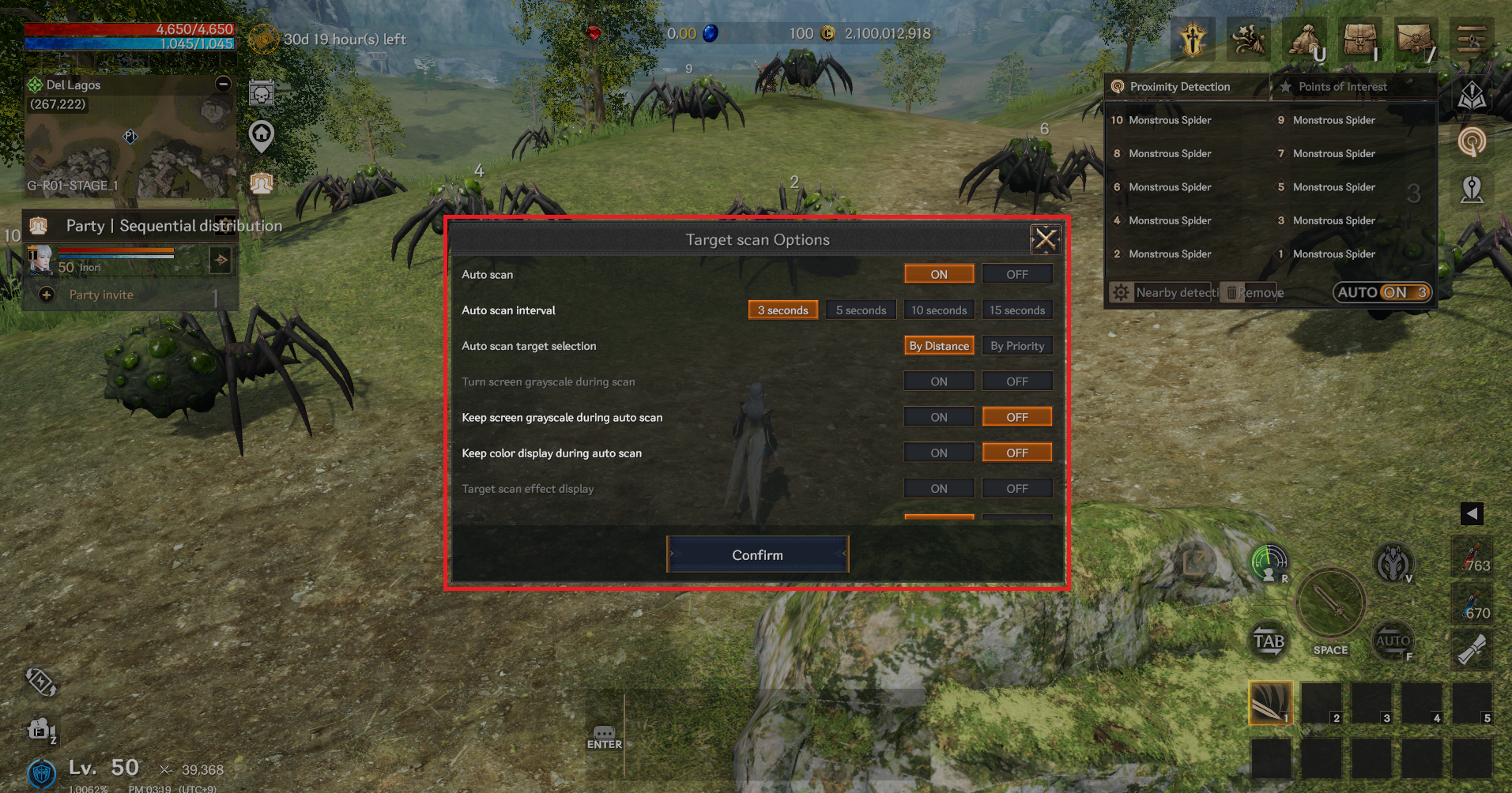 > You can select the auto scan target by distance and priority.