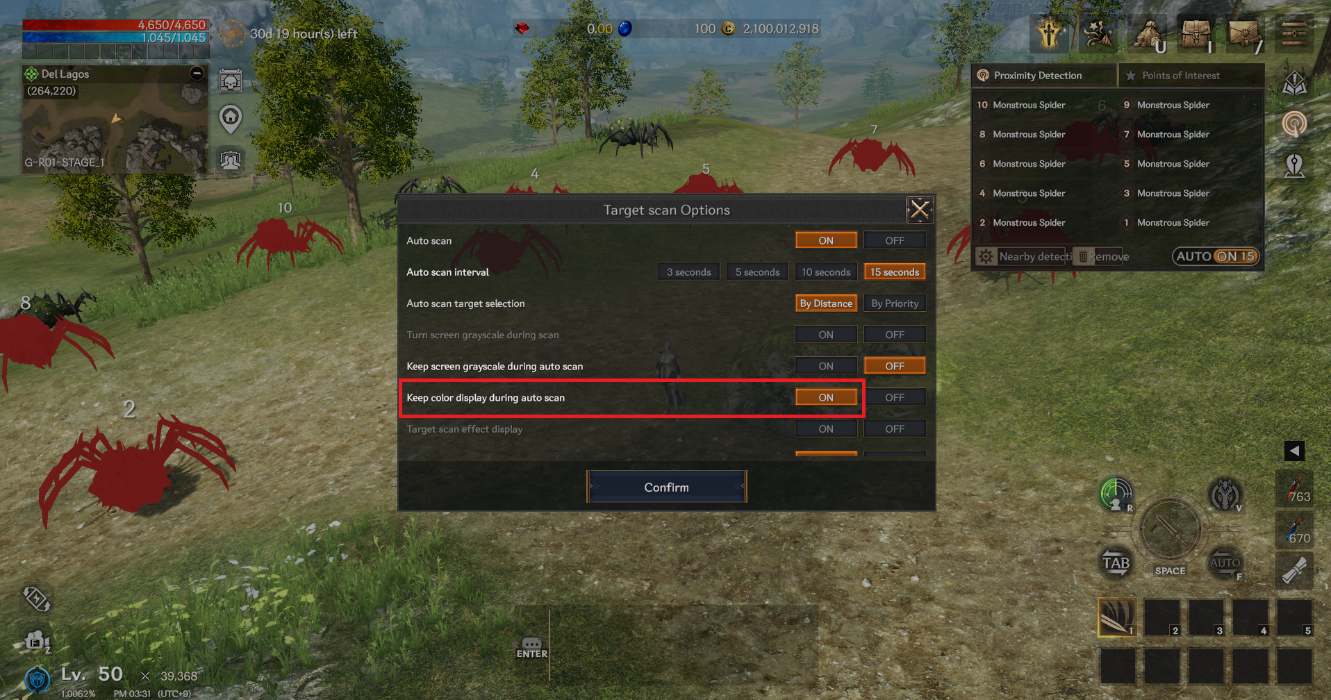 This feature helps you find monsters and players around you.