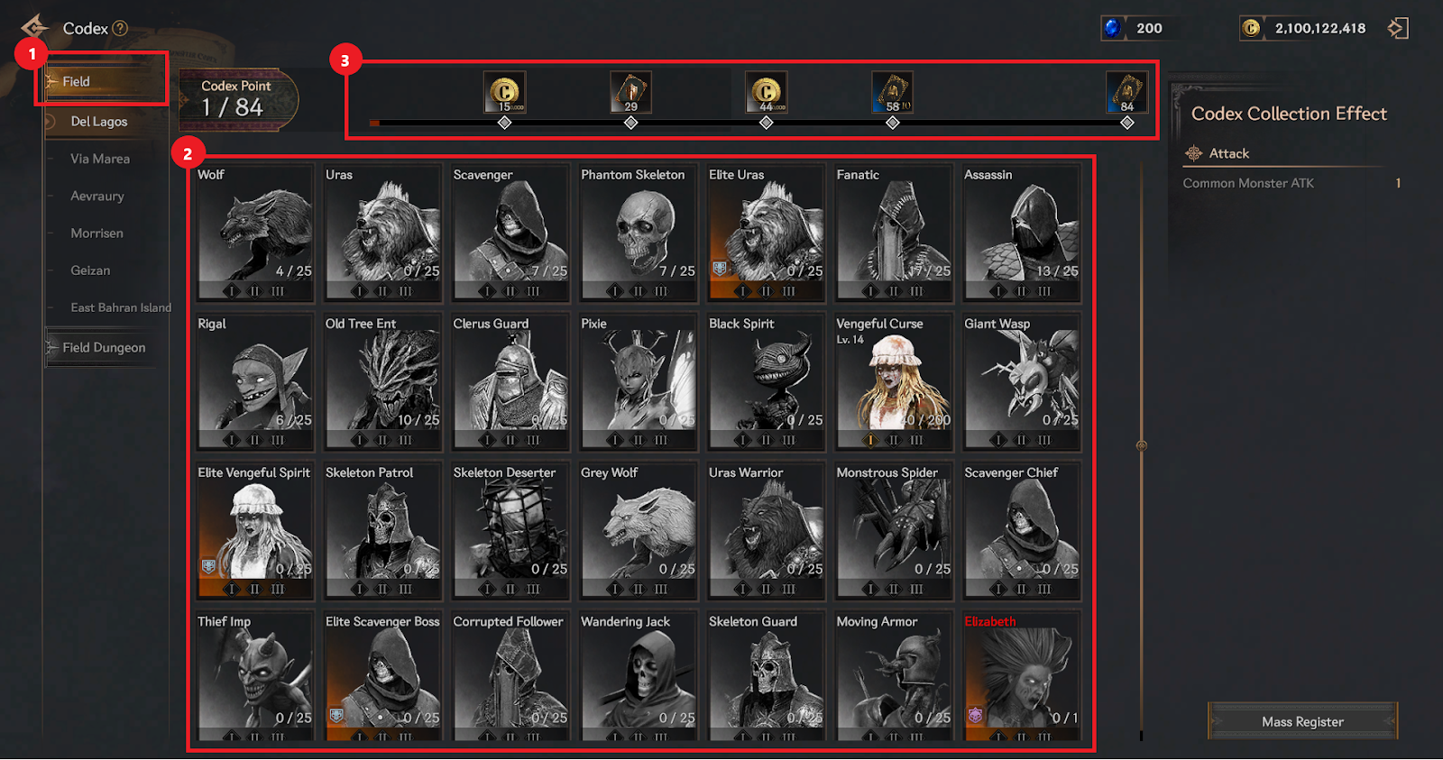 ③ Receive rewards based on the activated Codex Points.