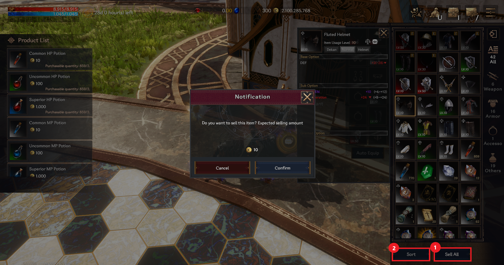 ① After selecting the items to sell, you can sell them immediately by selecting the ‘Sell All’ button.