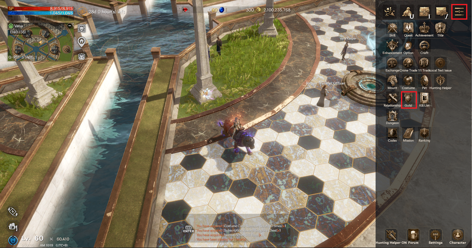 If you have joined a guild, you can participate in or manage various guild activities from the guild menu depending on your position.