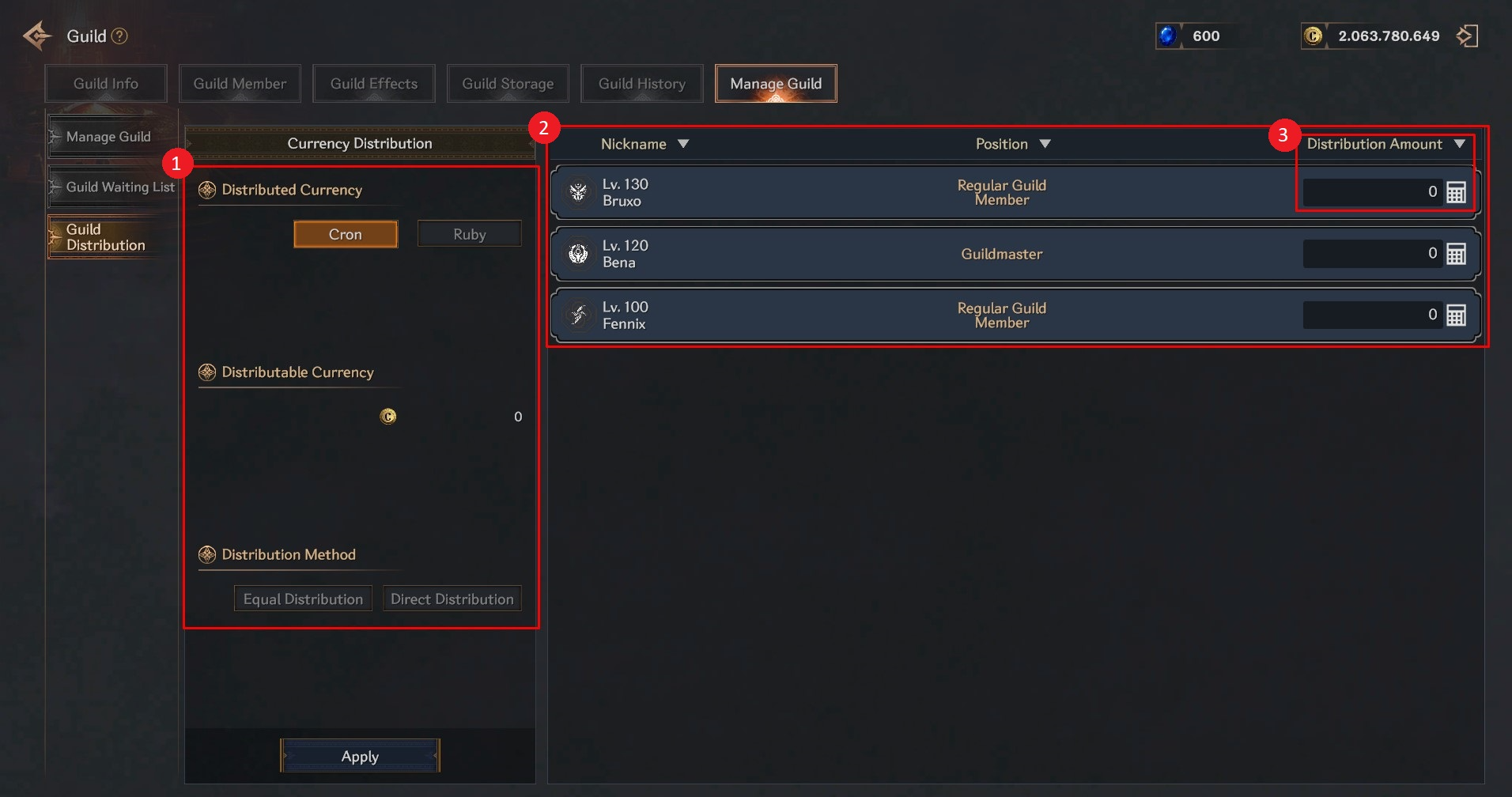 ② Check the list of guild members to receive the distribution.