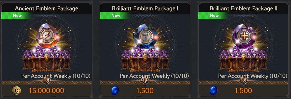 ✦ Ancient Emblem Package, Brilliant Emblem Package I,II
