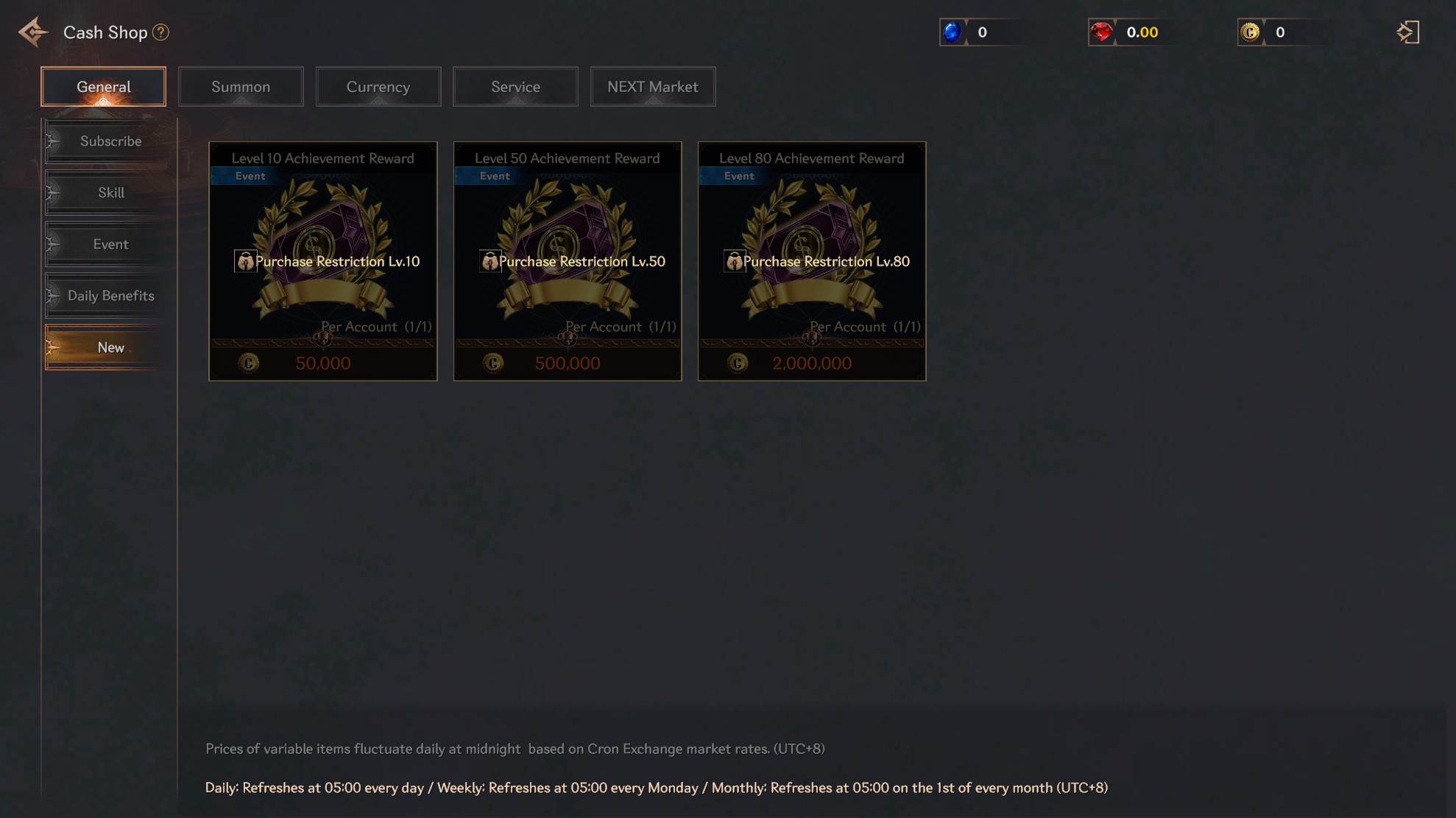 | Level 80 Achievement Reward | 2,000,000 Cron |