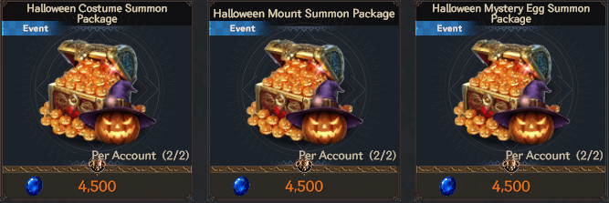 | Halloween Mount Summon Package | SAPPHIRE | 4.500 | 2 per account | 1 |