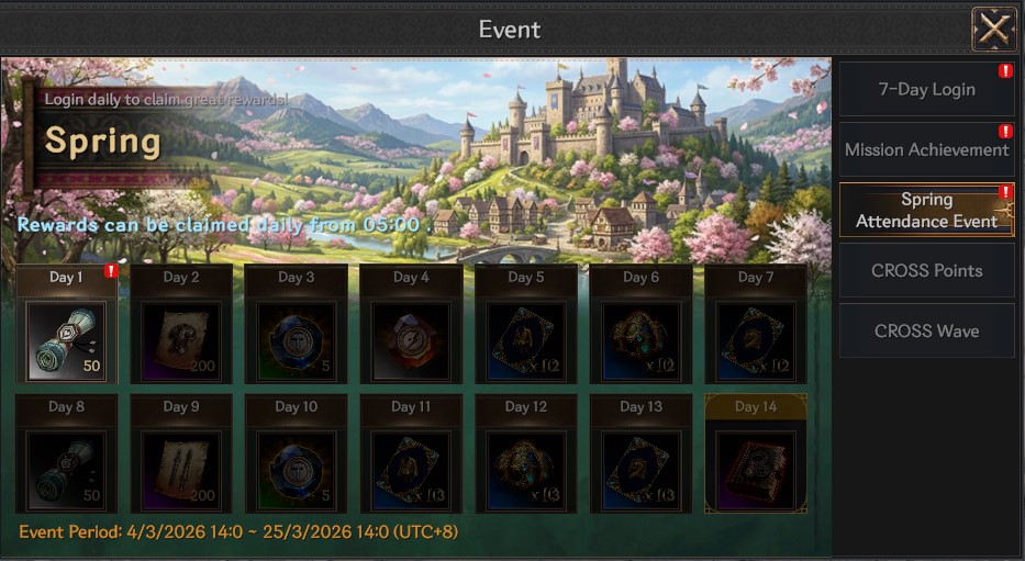 1. During the event period, you can obtain Spring Petals by completing daily missions.