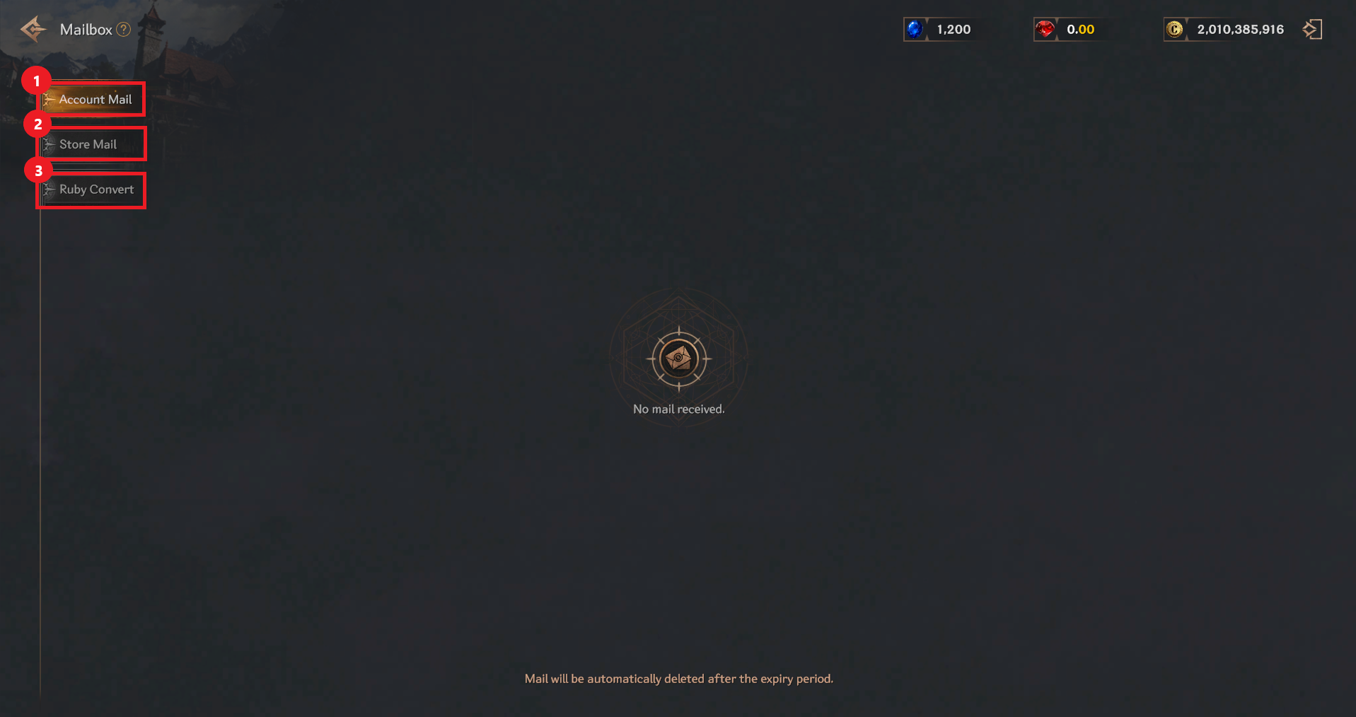 You can access your mailbox by clicking the crown icon (shortcut key: /) in the upper right corner.