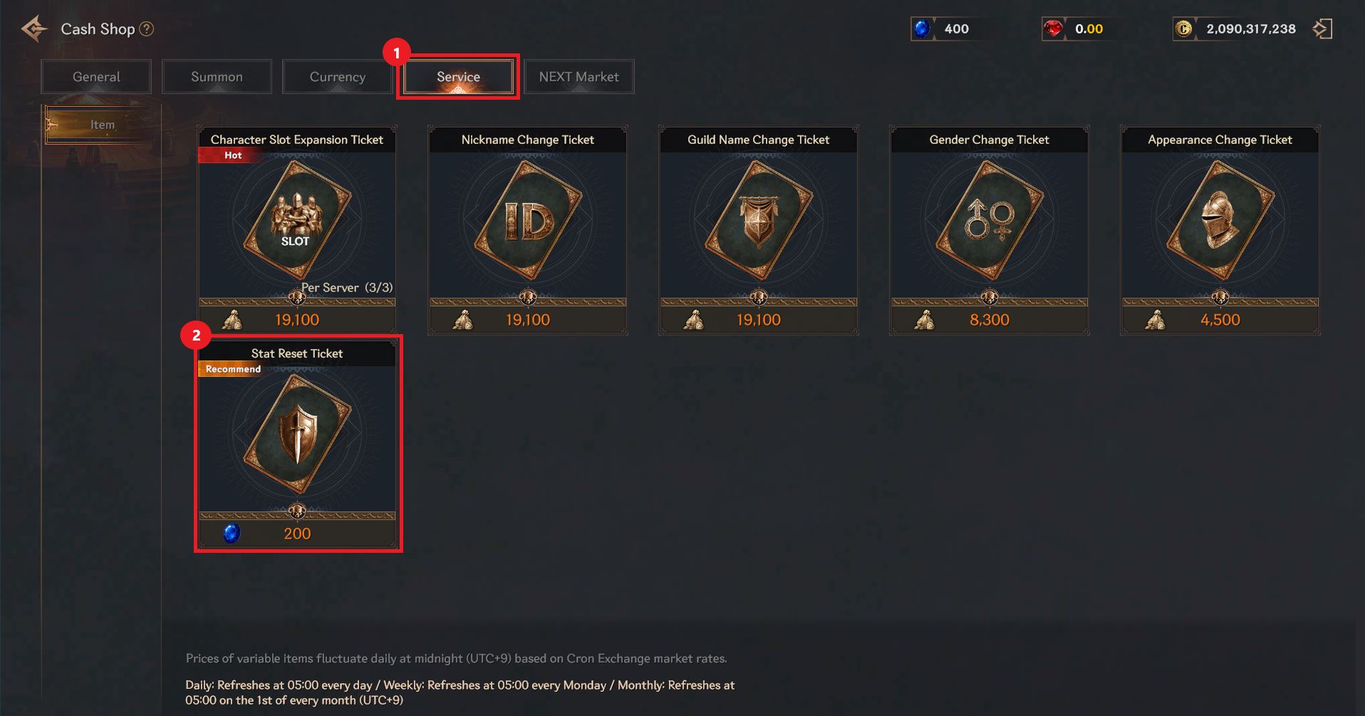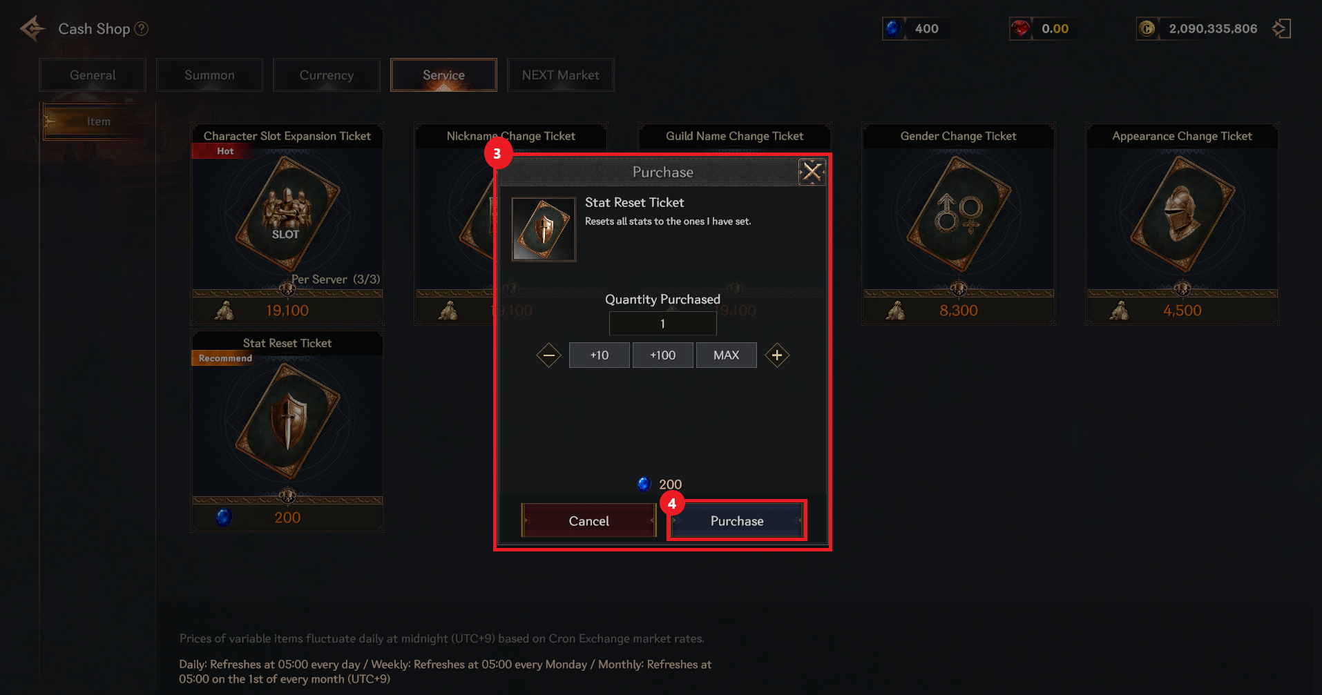 ④ If you choose to purchase when you have enough goods, a stat reset ticket will be sent to you by mail.