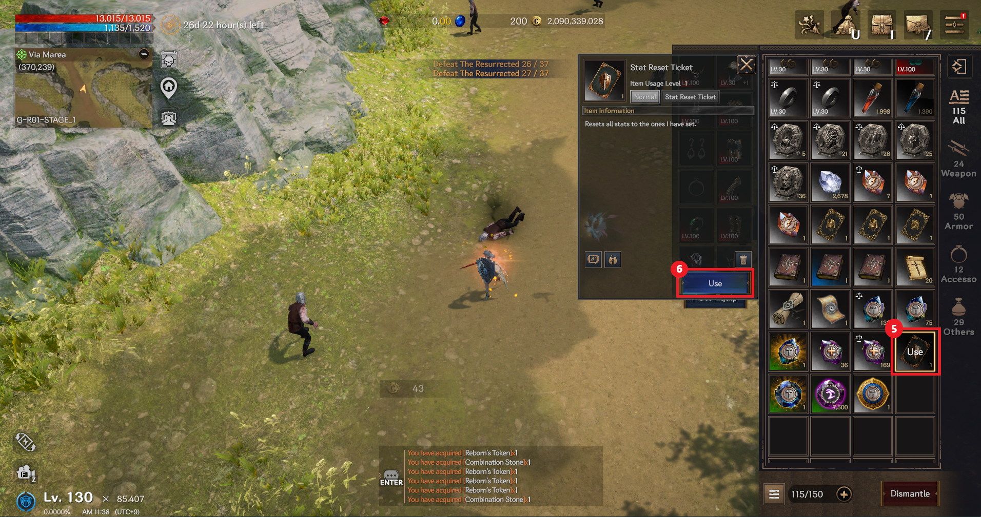 ⑤ Receive the stat reset ticket from the mail and check the stat reset ticket in your bag.
