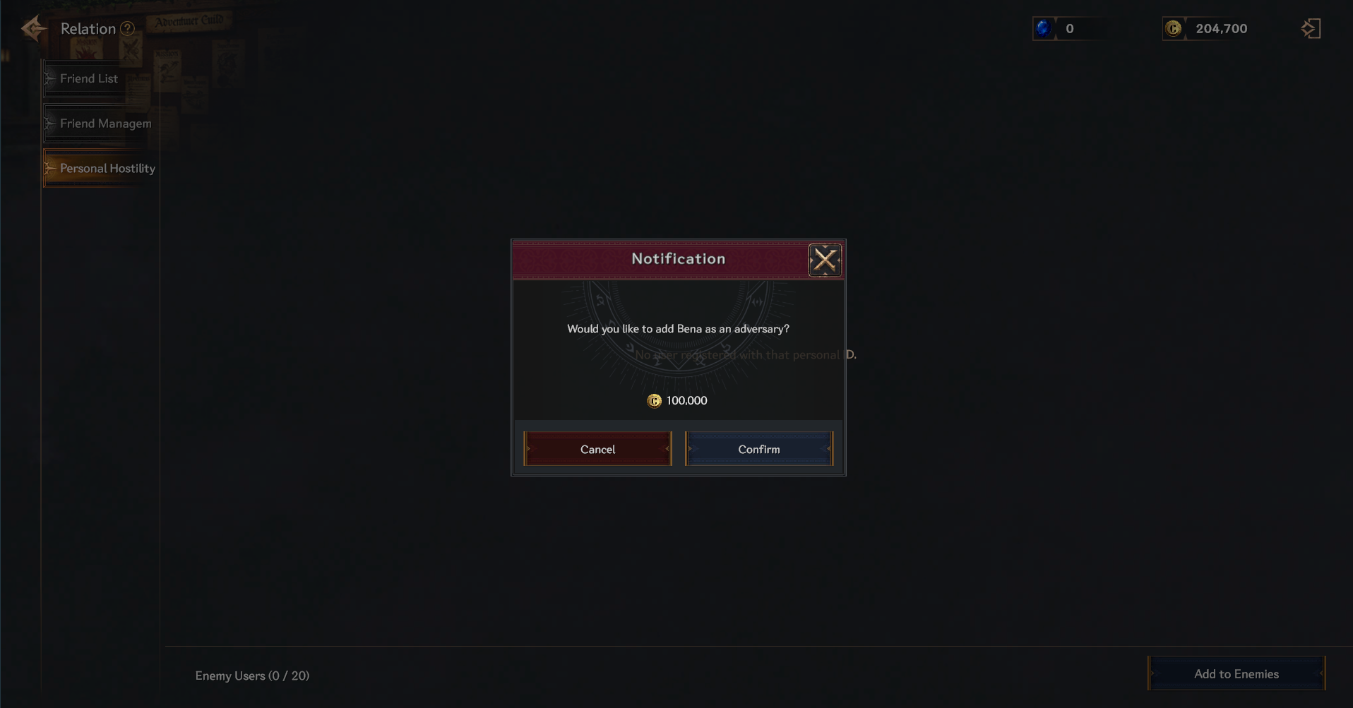 > You can add a personal hostile user by spending a certain amount of Cron.