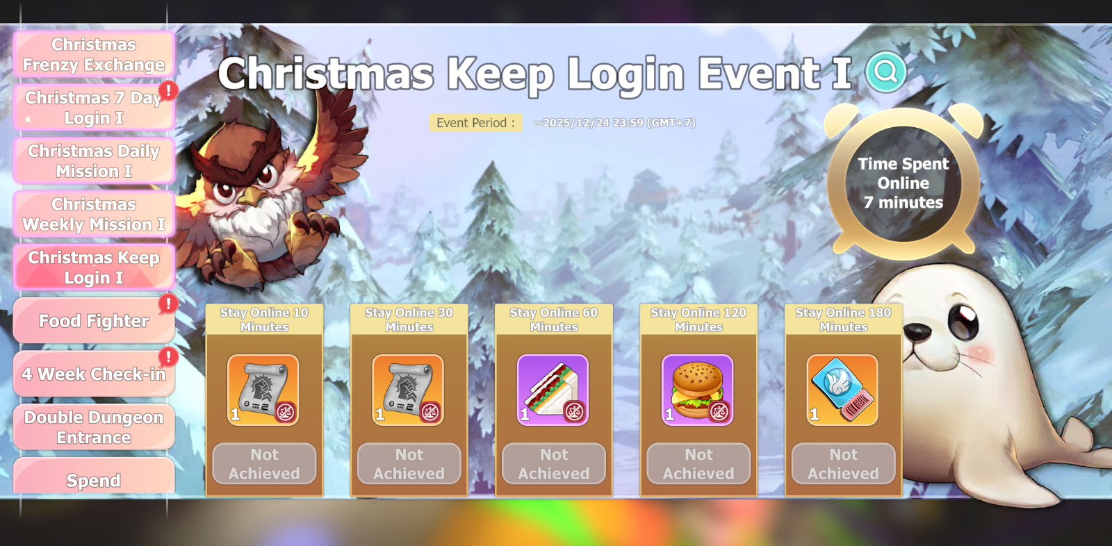 • Stay Online 30 minutes - Elim's EXP Buff 200% (2 Hours) (x1).