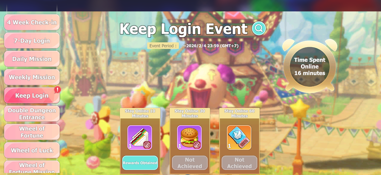 • Stay Online 60 minutes - Ooparts Summon Ticket (x1).