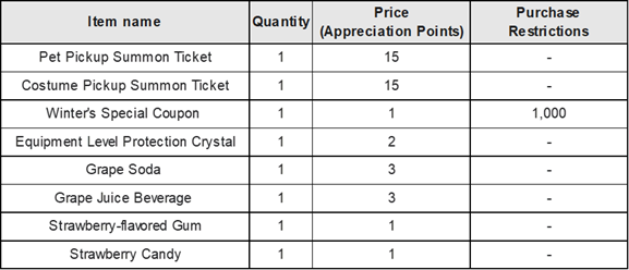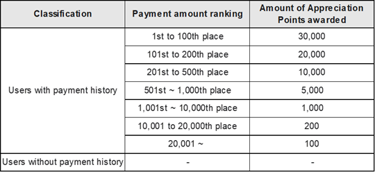 โธ All adventurers will be ranked based on their accumulated payment amount and given appreciation points.