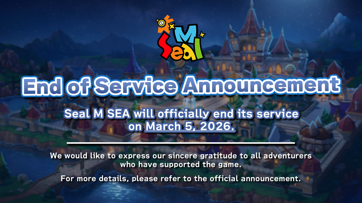 We hope you can continue to create cherished memories with Seal M during the remaining time with your beloved friends, and various events are being prepared until the service comes to an end.