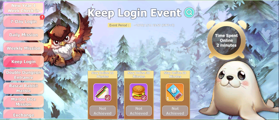 • Stay Online 60 minutes - Ooparts Summon Ticket (x1).