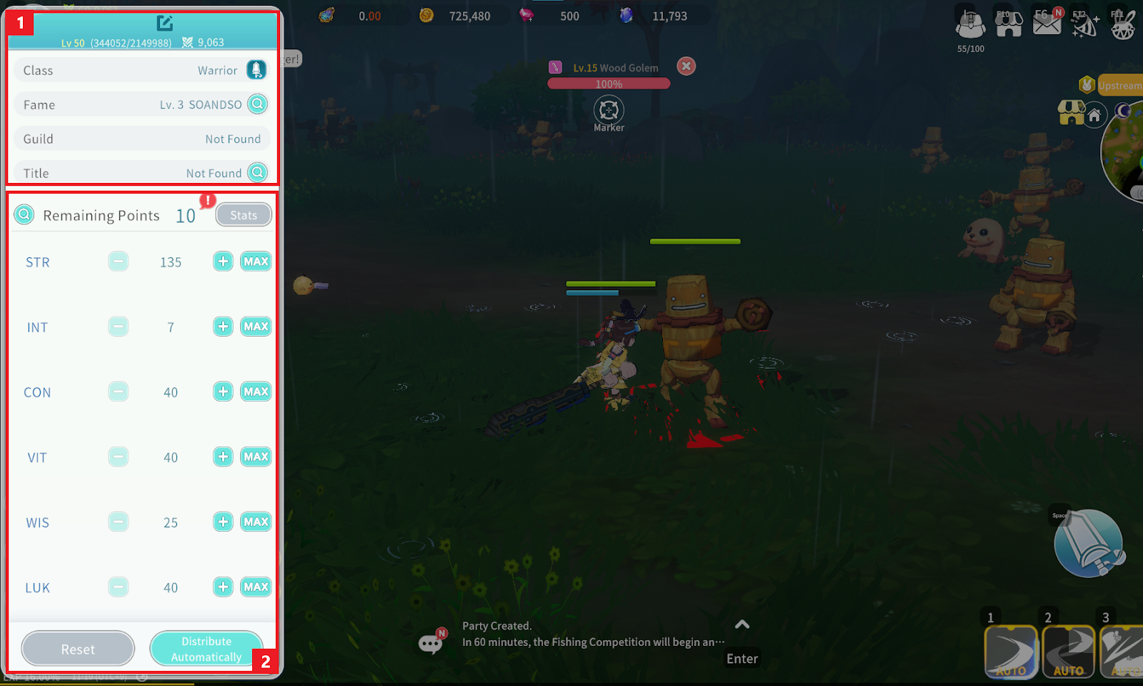 - Press “Distribute Automatically” to automatically distribute Stats appropriate for the current Class.