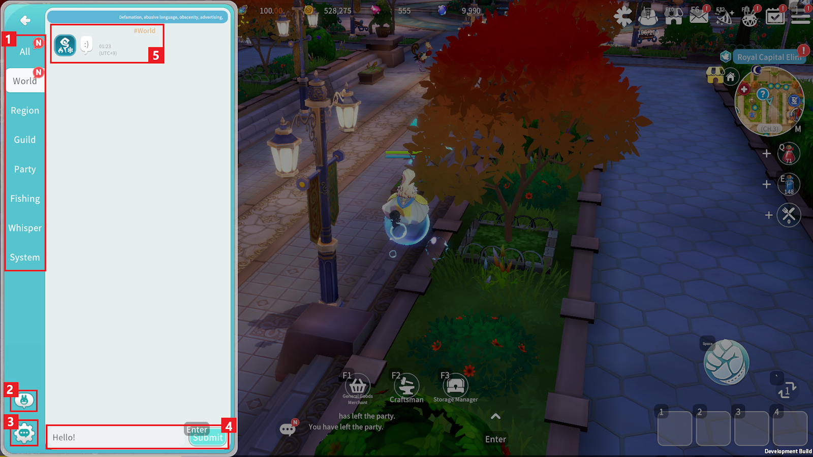 - System: View in-game notices, item acquisition messages, and combat logs.